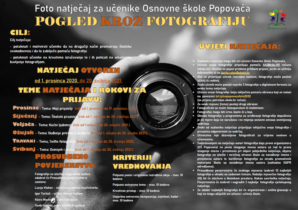 Osnovna škola Popovača organizira Foto natječaj Pogled kroz fotografiju za sve učenike škole.