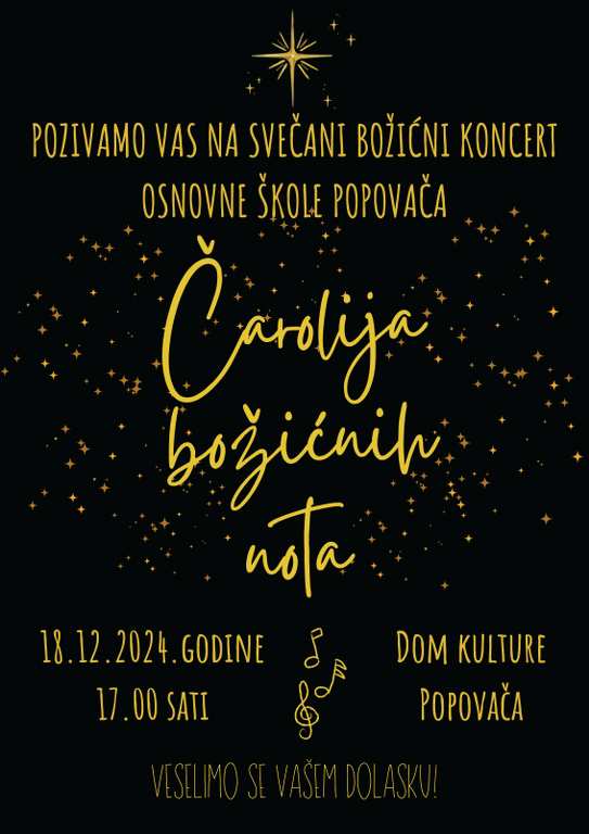 Pozivamo vas na svečani Božićni koncert Osnovne škole Popovača