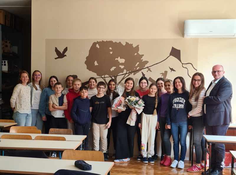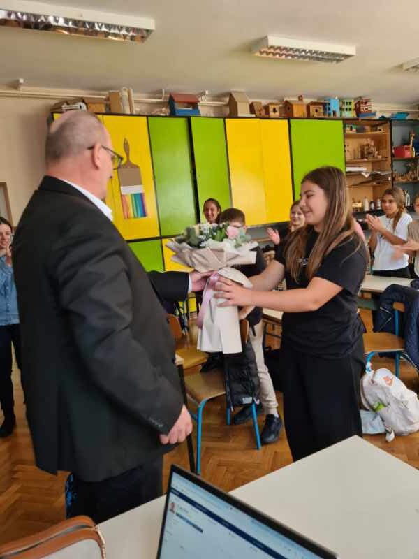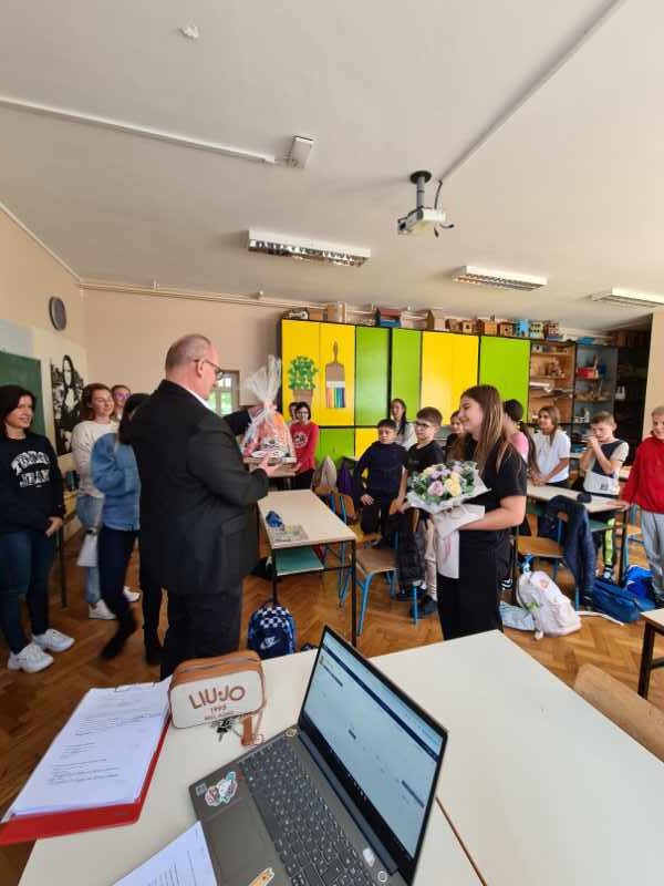Po povratku u školu, Rafaelu je iznenadio i ravnatelj škole Dražen Mlakar koji je u ime škole uručio poklon i cvijeće, istaknuvši kako je Rafaela svojim uspjehom ponos naše škole, ali i cijeloga grada. Učenici 6. b razreda, razrednica Natalija Šlehta, pedagogice i ravnatelj pozdravili su Rafaelin uspjeh velikim pljeskom.